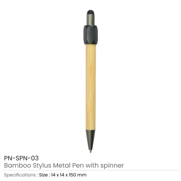 Bamboo and Metal Stylus Pens with Spinner – Blue Ink
